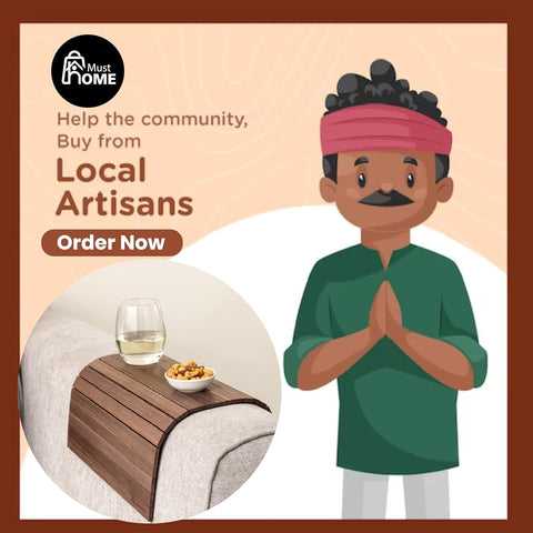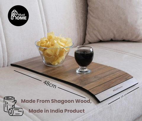 MustHome Wooden Tray | Sofa Armrest Tray |Flexible & Foldable | 50 X 30 Cm