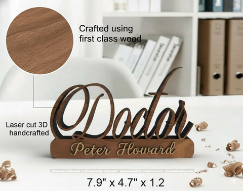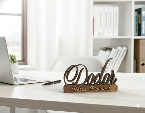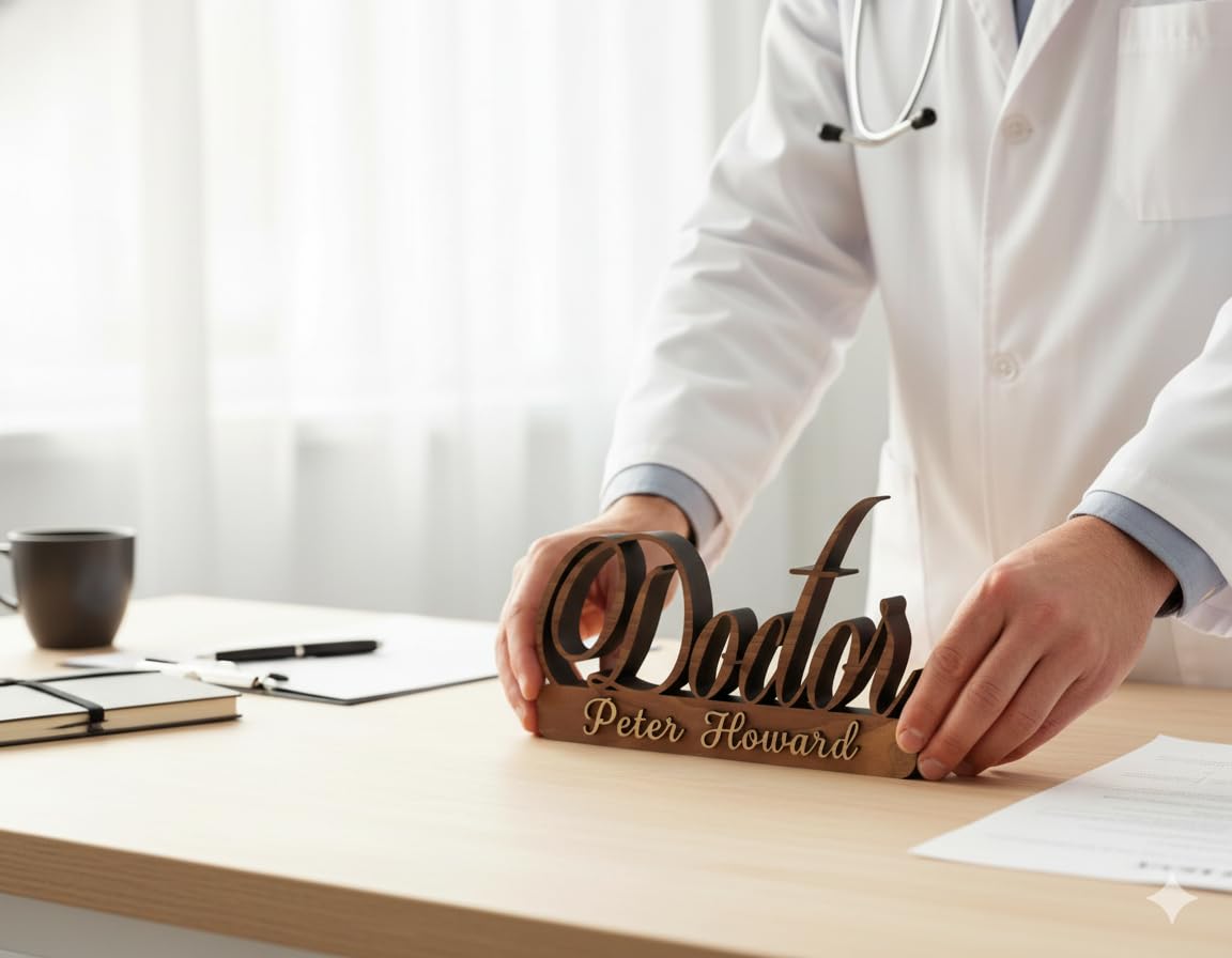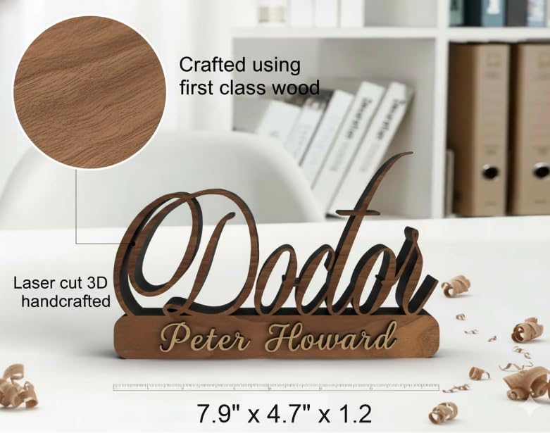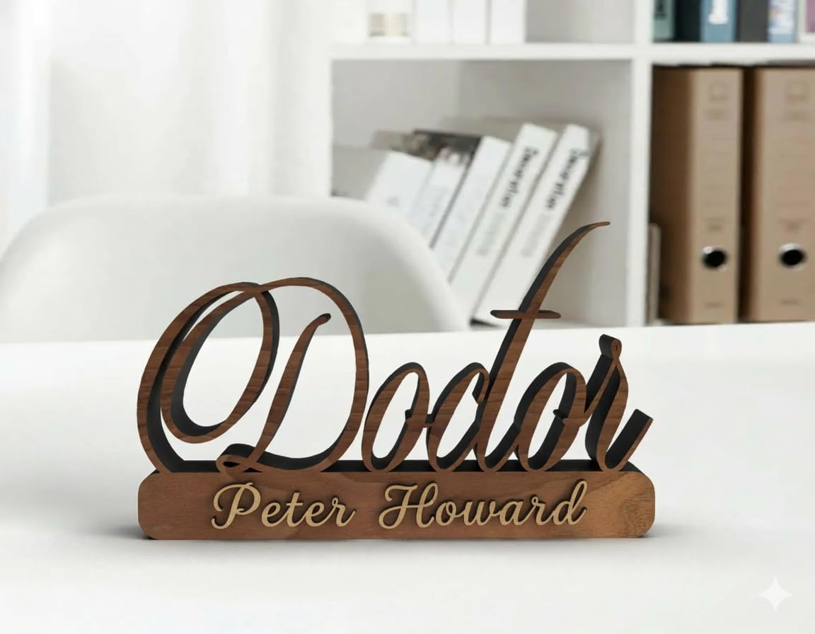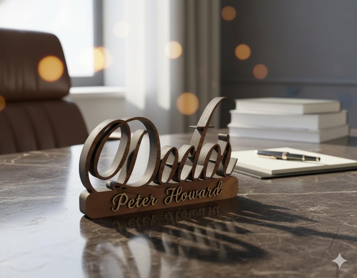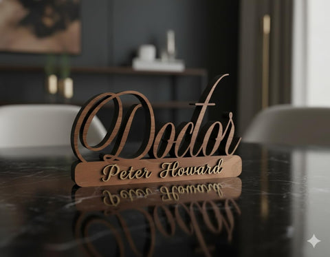 Premium Wooden Name Plate for Office Table: Give your workspace a professional touch with this handcrafted wooden desk name plate. Perfect for doctors, executives, or professionals who want a sleek and premium identity display.