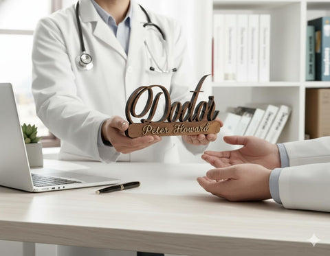Customizable 3D Design: Personalize your doctor name plate with your name, designation, and clinic details. The 3D laser-cut wooden layers add depth and class, making it stand out on any office desk or reception counter.